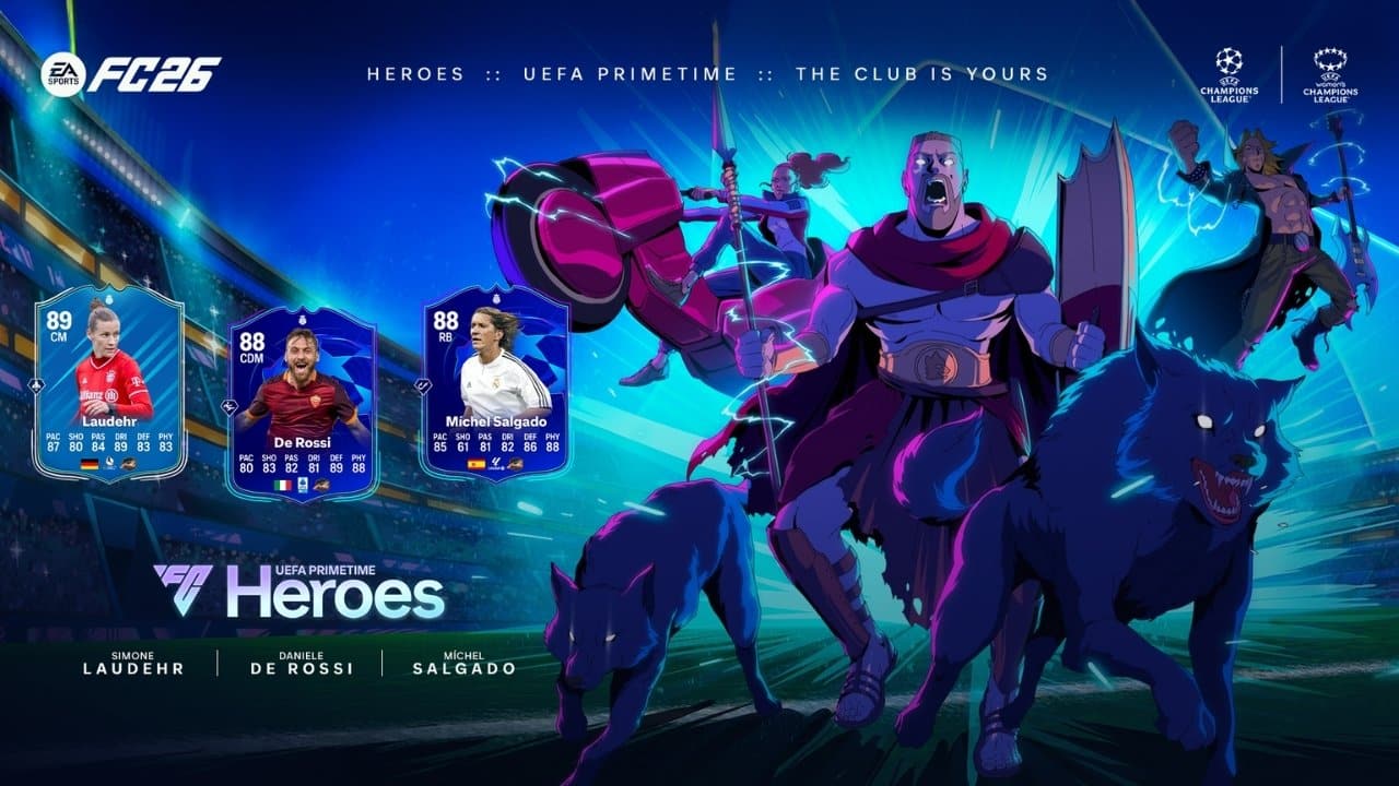 EA SPORTS FC feiert drei echte Legenden – Simone Laudehr, Daniele De Rossi und Míchel Salgado. Die drei stoßen als UEFA Primetime Heroes zum Spiel und stehen für genau das, was europäischer Fußball ausmacht: Leidenschaft, Charakter und Erfolg auf der größten Bühne.