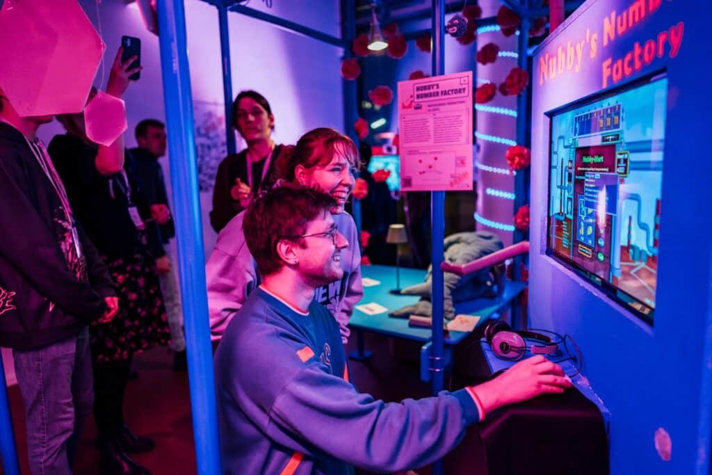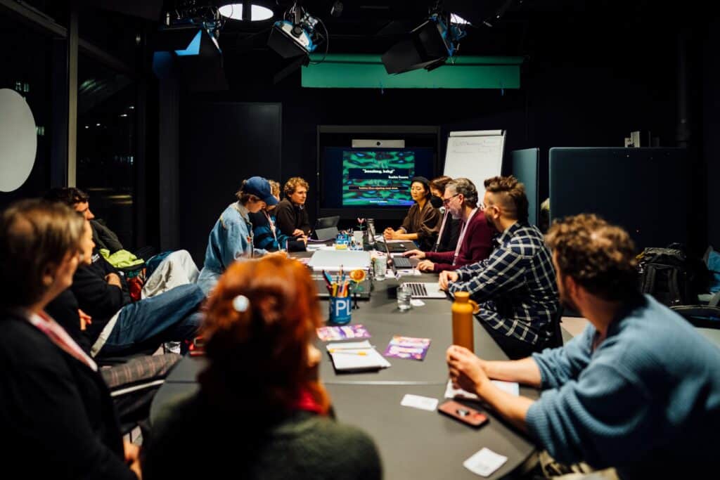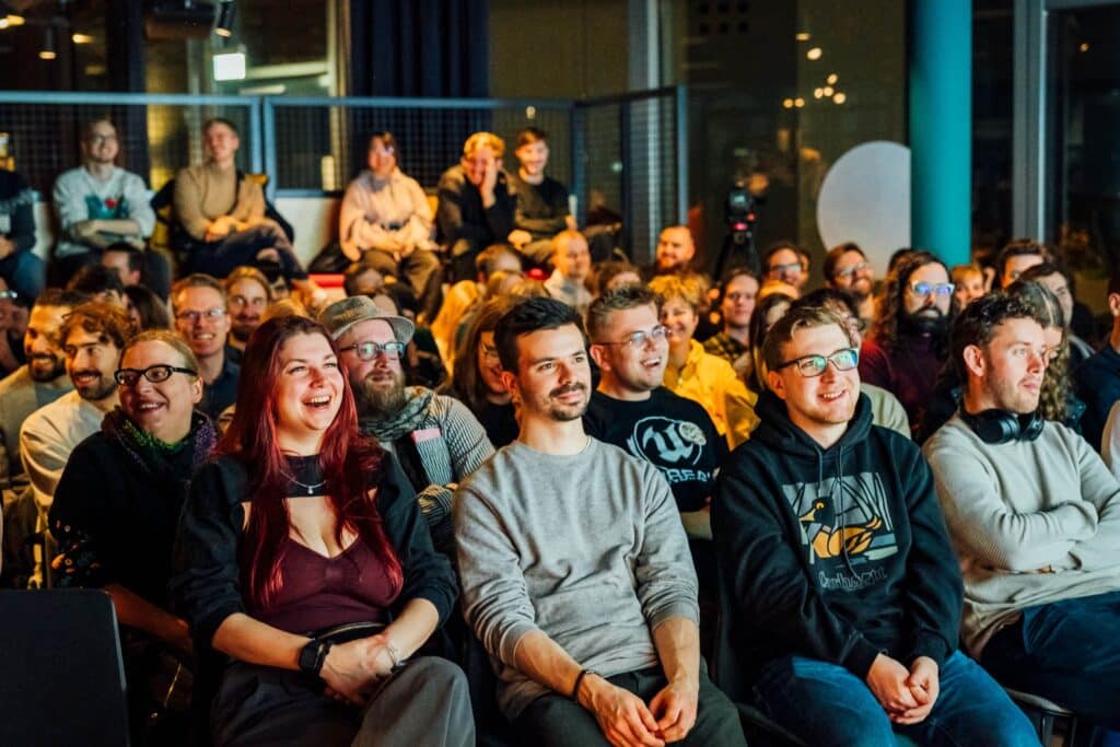 Der offene, sehr zugängliche Charakter macht es leicht, spontan Gespräche zu führen. Die PLAY-Community wirkt wie eine angenehm ungepolsterte Mischung aus Entwicklerinnen, Medienpädagoginnen, Kunstmenschen, Studierenden, Teenagern und Leuten, die einfach vorbeischauen, weil „irgendwas mit Games“ läuft.