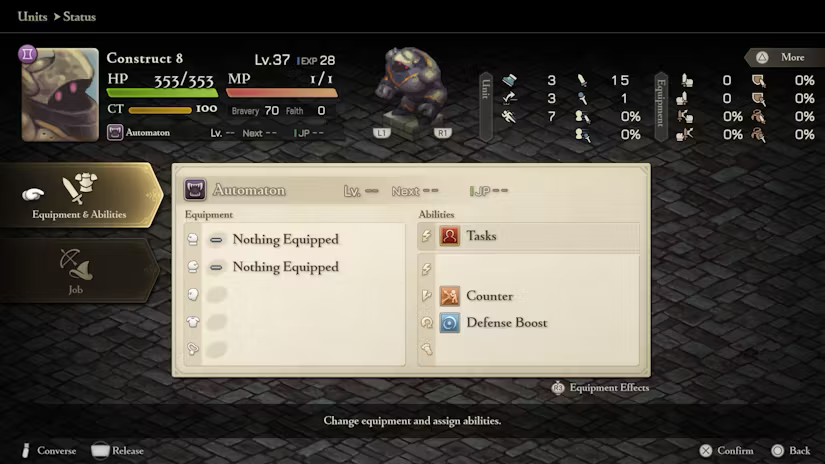 Vous aurez la possibilité de recruter Construct 8 immédiatement. Ce personnage atypique dispose d’attaques basées sur les mathématiques, proches de celles de l’Arithméticien.