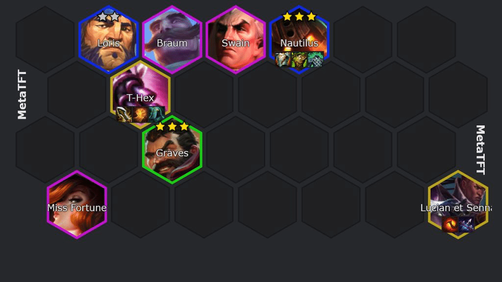 La composition T-Hex Pistolero repose sur un scaling agressif de Graves via le T-Hex, soutenu par Piltover et Bilgewater pour débloquer Nautilus et autres unités 3 étoiles. Très efficace si le robot est nourri régulièrement, elle peut snowball en late game tout en exigeant une gestion précise des golds.