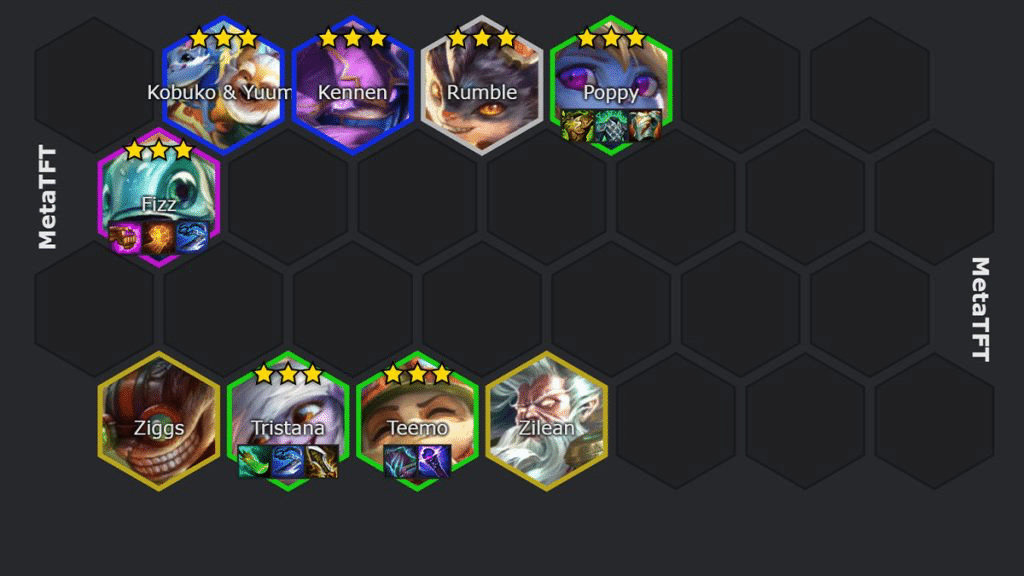 La compo Yordle Reroll se joue autour de Tristana et Poppy 3 étoiles, avec pour objectif d’aligner 8 Yordles. Grâce aux traits Yordle, cette composition permet des relances gratuites et un board solide. Fizz 3 étoiles peut garantir un top 1, tandis que Teemo et Lulu apportent soutien et dégâts AP.