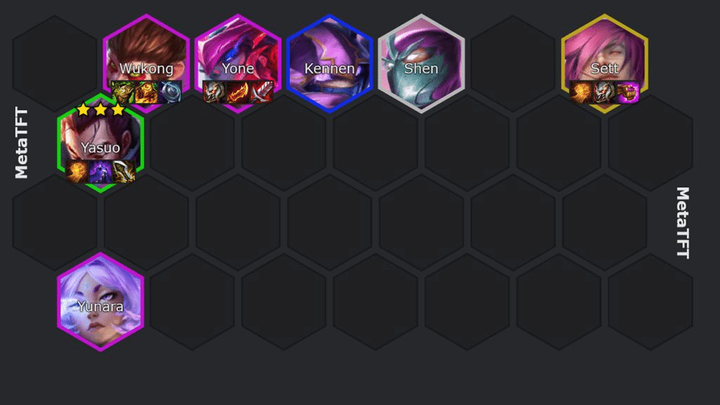 La compo Yasuo Yone Frères de sang repose sur Yasuo 3 étoiles pour débloquer Yone et activer les traits Ionia et Bourreau. Simple à jouer, elle utilise un slow roll au niveau 6 pour sécuriser Yasuo, puis monte en late game avec des unités complémentaires et les items principaux pour maximiser dégâts et survie.