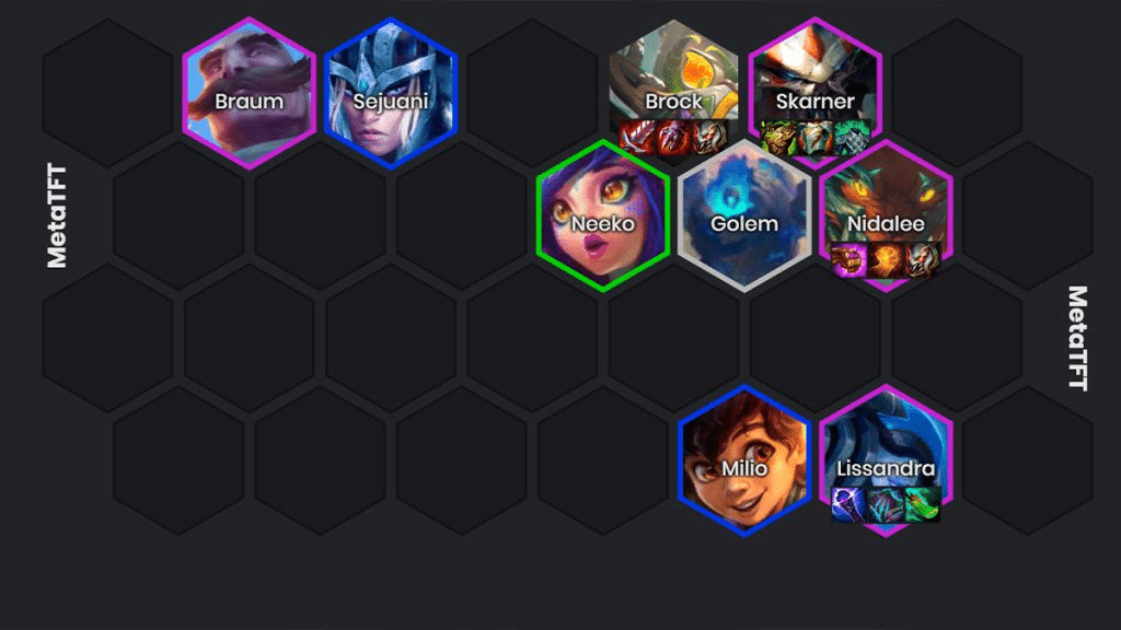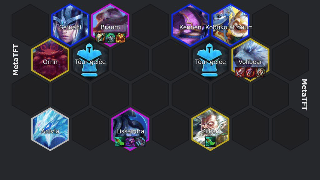 La composition Lissandra Incantateur Freljord mise sur le contrôle et les dégâts magiques. La frontline résistante de Freljord protège efficacement les carrys, tandis que Lissandra inflige des dégâts massifs aux unités ennemies. Avec le soutien de Braum, Zilean et Volibear, cette compo domine le late game.