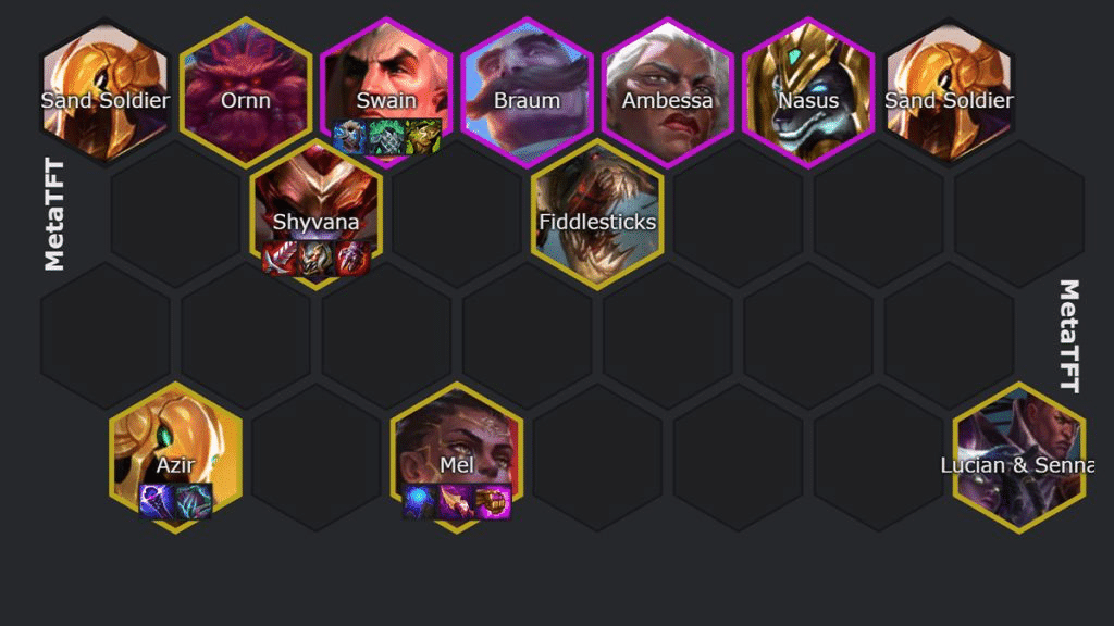 La composition Mel Fast 9 s’appuie sur l’obtention de Mel grâce à une Ambessa 2 et sur une montée rapide au niveau 9, élément central de son fonctionnement. Cette approche implique une gestion très stricte du tempo et une économie maîtrisée, car la moindre erreur peut compromettre toute la partie. Malgré le risque élevé, la stratégie révèle une puissance exceptionnelle en late game lorsque toutes les pièces clés sont réunies. Mel devient alors un carry capable de renverser n’importe quel board. Une option redoutable, mais réservée aux joueurs capables d’orchestrer une transition parfaitement contrôlée.