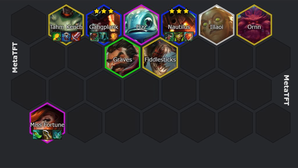 La composition Gangplank Reroll Bourreau mise sur un Gangplank 3 étoiles comme carry principal, soutenu par Bilgewater et Conquérants pour maximiser les dégâts. Rapide à installer en winstreak, elle peut dominer le mid-game, mais reste sensible à la concurrence, nécessitant une gestion précise du marché noir et des rolls.