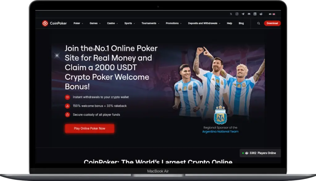 Бонус 150% до $2,000 дає змогу розпочати гру з додатковими коштами, а CoinPoker не вимагає жодної верифікації для депозитів чи виведень. Платформа працює виключно з криптовалютами, що забезпечує повну анонімність від реєстрації до отримання виграшів. Ліцензія Anjouan Gaming підтверджує законність такого підходу.