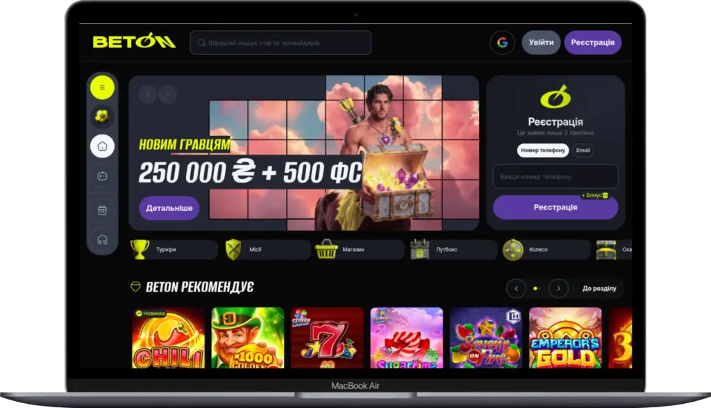| Beton | ⭐⭐⭐⭐⭐ | Найшвидші виплати на ПриватБанк, Monobank та інші за 48 годин | До 250 000 UAH + 500 спинів |