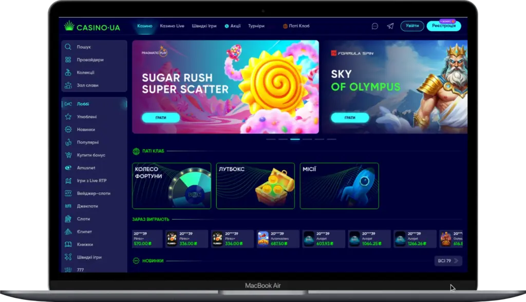 - Casino.UA – Ексклюзивні live-ігри українською та понад 9500 слотів
