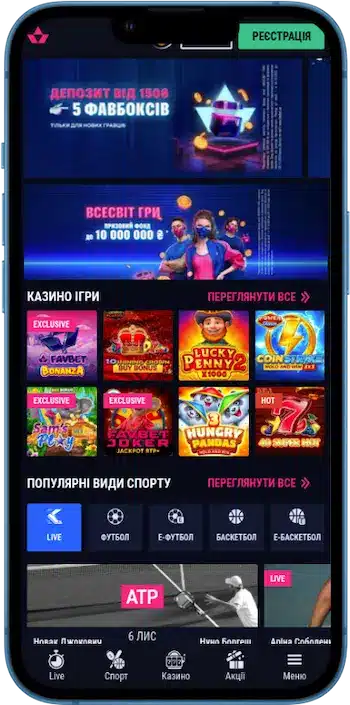 Мобільний додаток підтримує повний функціонал сайту, включно з live-іграми та історією ставок. Цілодобовий чат надає підтримку українською мовою, а інтерфейс повністю локалізовано під потреби місцевої аудиторії.