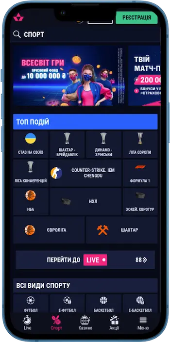 - Інтеграція казино, спортивних ставок та кіберспорту в єдиному акаунті