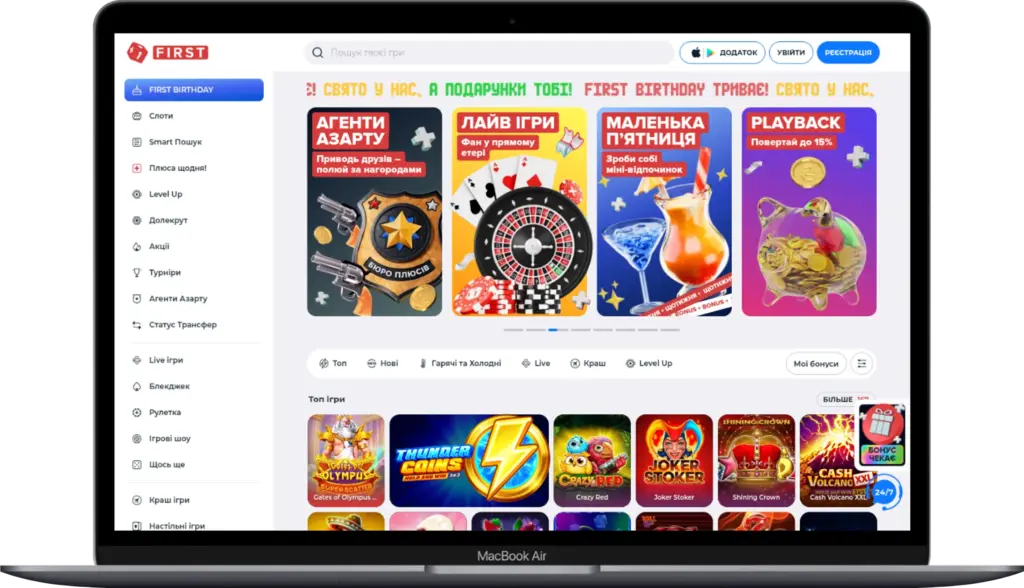 - FIRST казино – Ексклюзивні джекпоти та мережа наземних залів по всій Україні