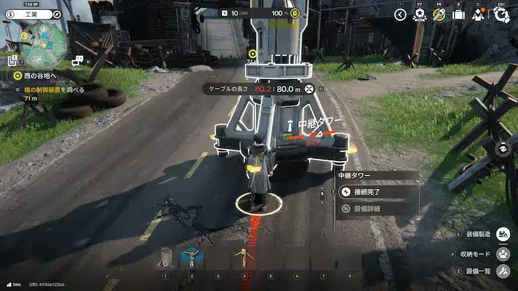 これで安心といえばそうなのだが、それでも限界を突き詰めたいプレイヤーというのはいるものだ。80mギリギリを目指して「80.1m」という表記が出て、ケーブルが接続できないときの絶望感もまた凄まじいものである。ギリギリを攻めるのは良いかもしれないが、出来ることならタワー建設前にケーブル長を確認する事をオススメしたい。筆者もギリギリを攻めようとして苦渋を舐めたクチである。