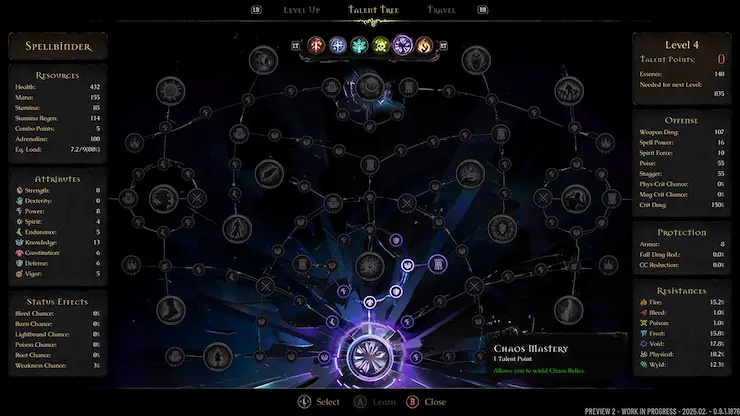 このプレビューで騎士のようなクラスを再ロールするか、魔術師やローグライクのオプションを試すかという選択肢に直面し、私は片手に魔法を、もう片手に剣を構えることにした。ほとんどの人が驚くかもしれないが、このゲームでは魔術も非常に強力なようだ。「スペルバインダー」のスキル/パークツリーもそれほど制限的ではない。特定のノードを使用すると、ガラスの大砲ではなく、より頑丈な魔法使いを育成できる。マンドラゴラの進行は非常にわかりやすく、フロム・ソフトウェアの教えに忠実なゲームに期待される通りの仕組みだ。とはいえ、装備とスキルのレイヤーはディアブロ 系のARPGに近い。実に魅力的な組み合わせだ。