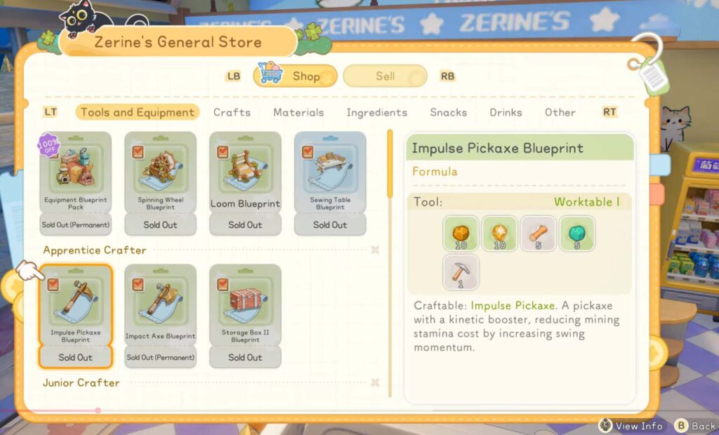 早期のツールアップグレード、装備の作成、進行に基づいた作成レシピをサポートします。