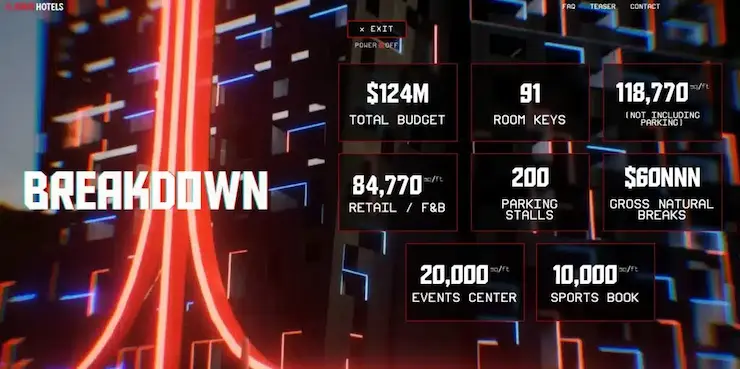 タイムラインによれば、グランドオープンは2028年半ばを予定しており、当初はラスベガスとアリゾナに加え、オースティン、シカゴ、デンバー、サンフランシスコ、サンノゼ、シアトルにもホテルが計画されていた。なかなかの大規模計画だ。