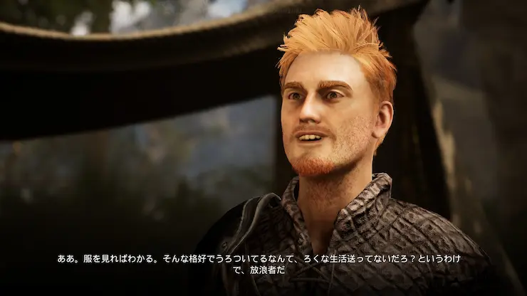 この後紆余曲折あり、プレイヤーは世捨て人ネレインが暮らす小屋で世話になる。なお現状体験版の仕様として窃盗に類する要素が確認されていないため、中にあるものは基本プレイヤーの持ち物として取得する事が出来る。TESシリーズなどを既プレイの筆者としても取得に抵抗があったが、本作はそのあたりは優しい設計となっている。また、アイテムの制作要素のチュートリアルとして小屋内のアイテムで序盤向けの防具も制作可能だ。