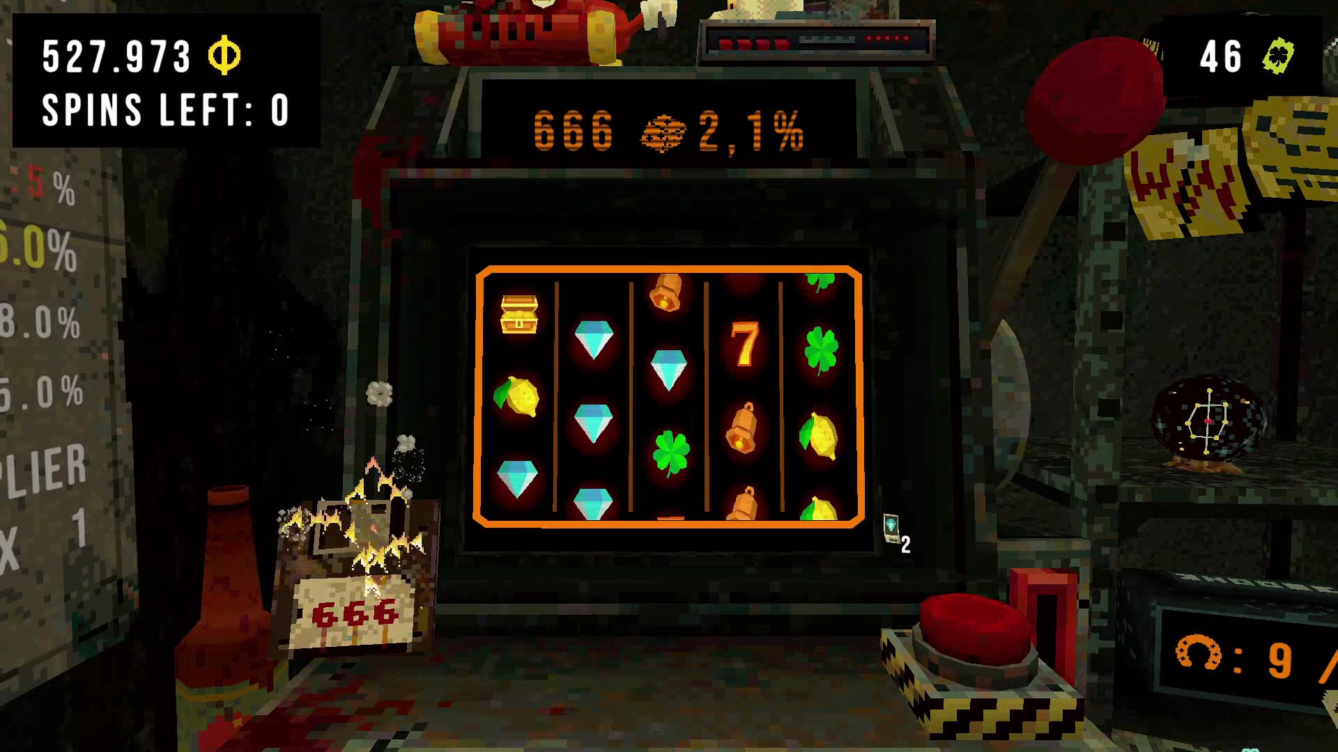 게임은 전반적으로 《발라트로》 (Balatro), 《벅샷 룰렛》 (Buckshot Roulette) 등 도박 구조를 차용한 인디 로그라이크 게임들의 영향을 받은 것으로 보인다. 플레이어는 낡은 슬롯머신이 놓인 폐쇄된 공간에 갇혀 있으며, 게임 내 ‘ATM’을 통해 점점 불어나는 빚을 갚고 탈출을 시도해야 한다. 상환 기한은 라운드 단위로 제한돼 있으며, 금액을 채우지 못하면 게임은 종료된다.