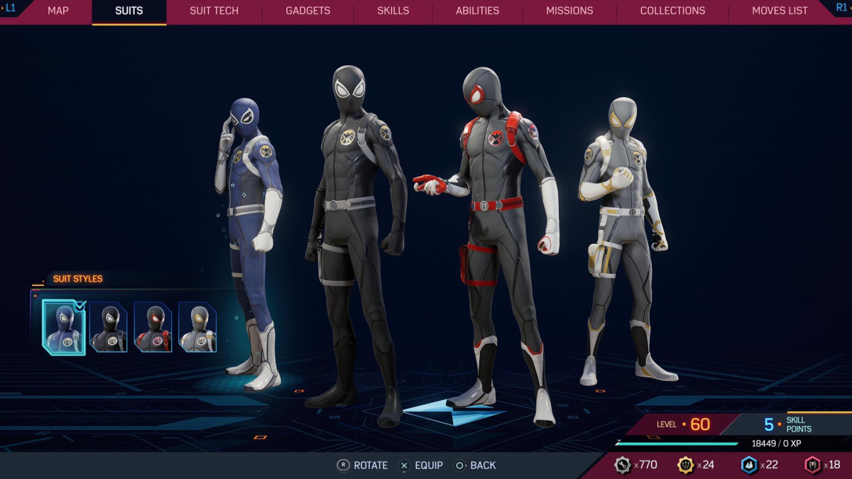 Unlocked by reaching level 40, the Agent of S.H.I.E.L.D suit for Miles is one of the most unexpectedly great additions to Spider-Man 2. The costume is based on a variant cover for Miles Morales: Ultimate Spider-Man #9 from 2014, but Insomniac takes the idea and runs with it. The suit and all of its styles bear little resemblance to the typical Spider-Man design, but it is a lot of fun to swing in and makes you feel like a member of a covert government agency. Exactly what you want from Spider-Man 2, mind you.